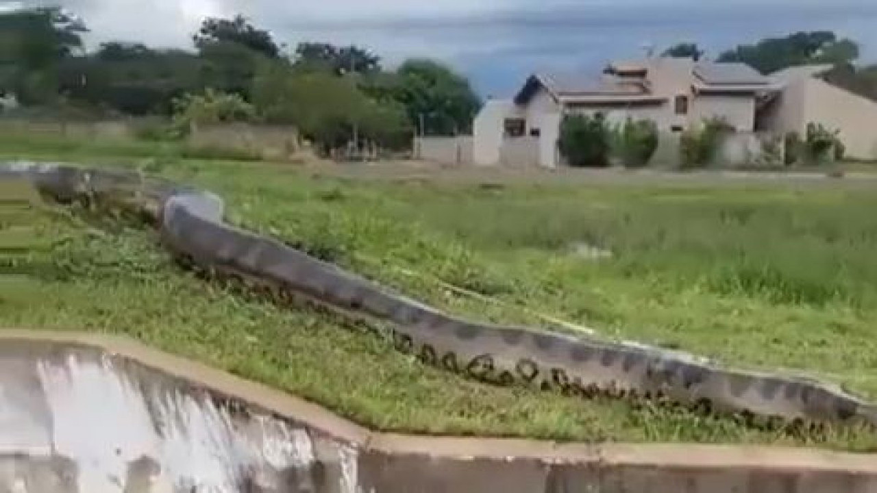 Şehirde yaşayanlar, yakınlarında bir sulama kanalından gelen ve 10 metreden uzun olduğu sanılan kocaman bir anakondanın evlerine çok yakın bir yerde göründüğünü hayretle gördüler.