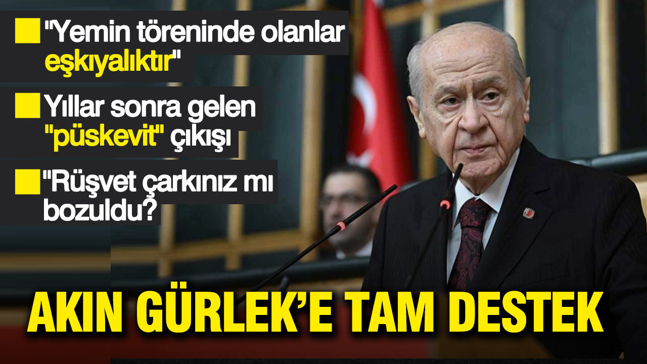 İstanbul Cumhuriyet Başsavcısı Akın Gürlek'in Adalet Bakanı atanmasına tepki gösteren CHP'yi eleştiren Bahçeli, Akın gürlek'e sahip çıktı. CHP'nin tutumunu "eşkıyalık" olarak nitelendiren Bahçeli, " Bu öfkeniz neden? Rüşvet çarkınız kırıldı da ondan mı? İstanbul'daki tezgahınız bozuldu ondan mı? Maskeniz düştü, ipliğiniz pazara çıktı foyanız ortaya döküldü diye mi?