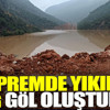 Yıkılan dağdan kopan kaya parçaları ulaşımı kapattı. Kopan parçalar dere yatağını doldurdu ve doğal göl oluştu.