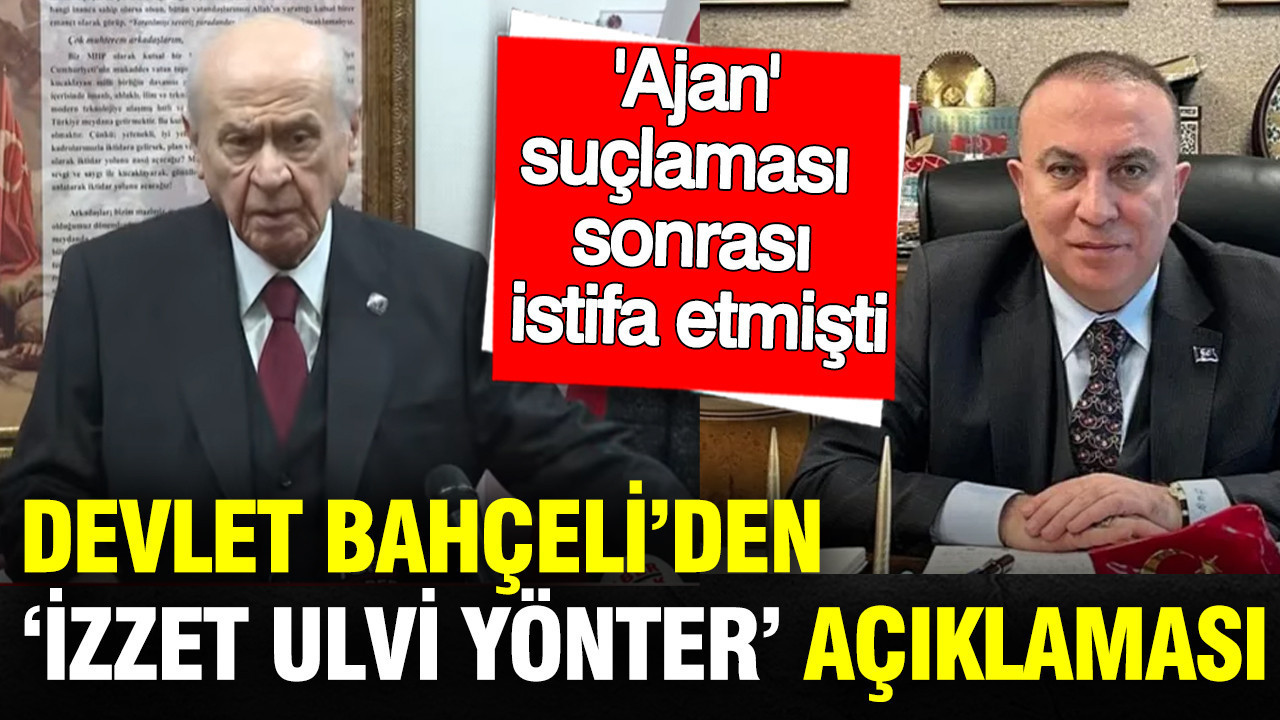 MHP Lideri Devlet Bahçeli, İzzet Ulvi Yönter'in istifasına dair ilk kez açıklamalarda bulundu. Bahçeli, Yönter'in istifasının nedenine dair 'akademik kariyer' ifadelerini kullanması dikkat çekti.