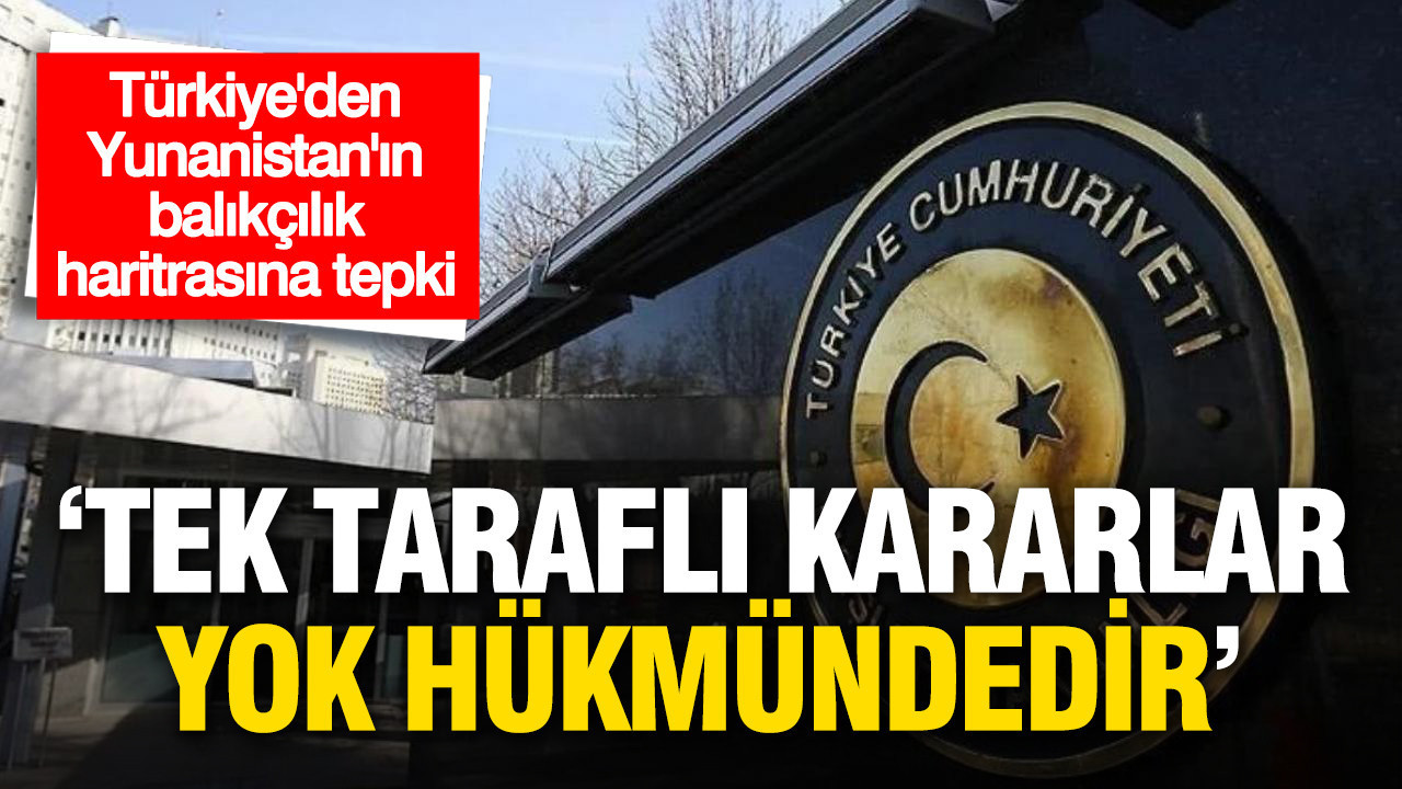 Dışişleri Bakanlığı'ndan yapılan açıklamada, Yunanistan Balıkçılık Denetim Müdürlüğü'nün Yunanistan'ın Ege'de ve Doğu Akdeniz'de yetki sahibi olmadığı bazı alanlarda balıkçılığa yasak bölgeler tesis ettiği ve uluslararası hukuka aykırı çeşitli haritalar yayımladığının tespit edildiği ifade ederek "Türkiye ile Yunanistan arasında Ege ve Akdeniz'de var olmayan, hayali deniz sınırları çizen ve buralarda Türk deniz yetki alanlarını ihlal eden haritaların geçerliliği yoktur. Yunanistan'ın 6 deniz mili genişliğindeki karasularının ötesinde, yetki sahibi olmadığı yerler ile deniz alanlarında ve uluslararası sularda, balıkçılık faaliyetlerine getirdiği gayrihukuki kısıtlamalar Türkiye bakımından keza yok hükmündedir" denildi.