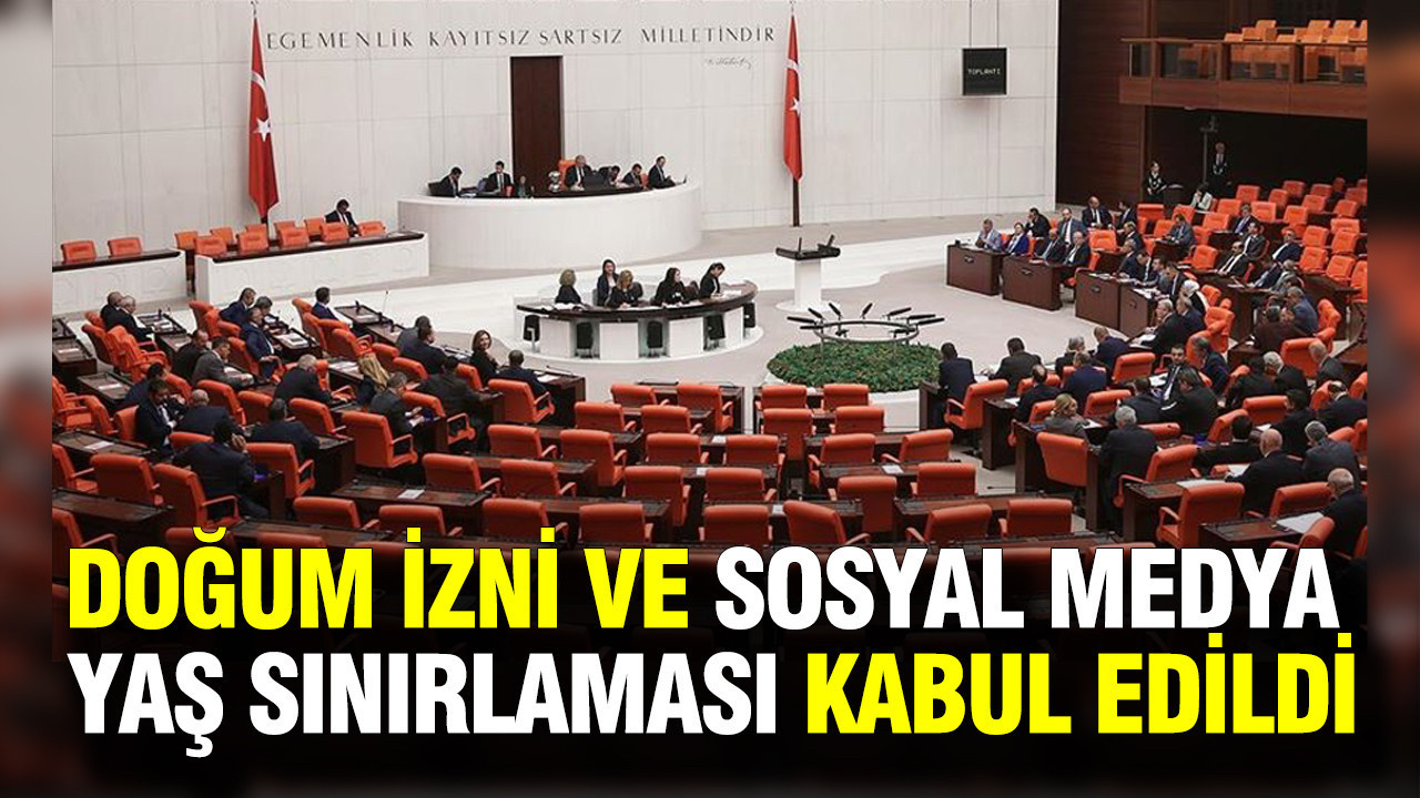 Meclis Başkanvekili Celal Adan başkanlığında toplanan TBMM Genel Kurulu, sosyal medyanın 15 yaş altına engellenmesi ve kadınların doğum izninin 16 haftadan toplam 24 haftaya çıkarılmasına ilişkin düzenlemeleri içeren Sosyal Hizmetler Kanunu ve Bazı Kanunlarda Değişiklik Yapılması Hakkında Kanun Teklifi'nin ikinci bölümünde yer alan maddelerin görüşmelerine devam ediyor.