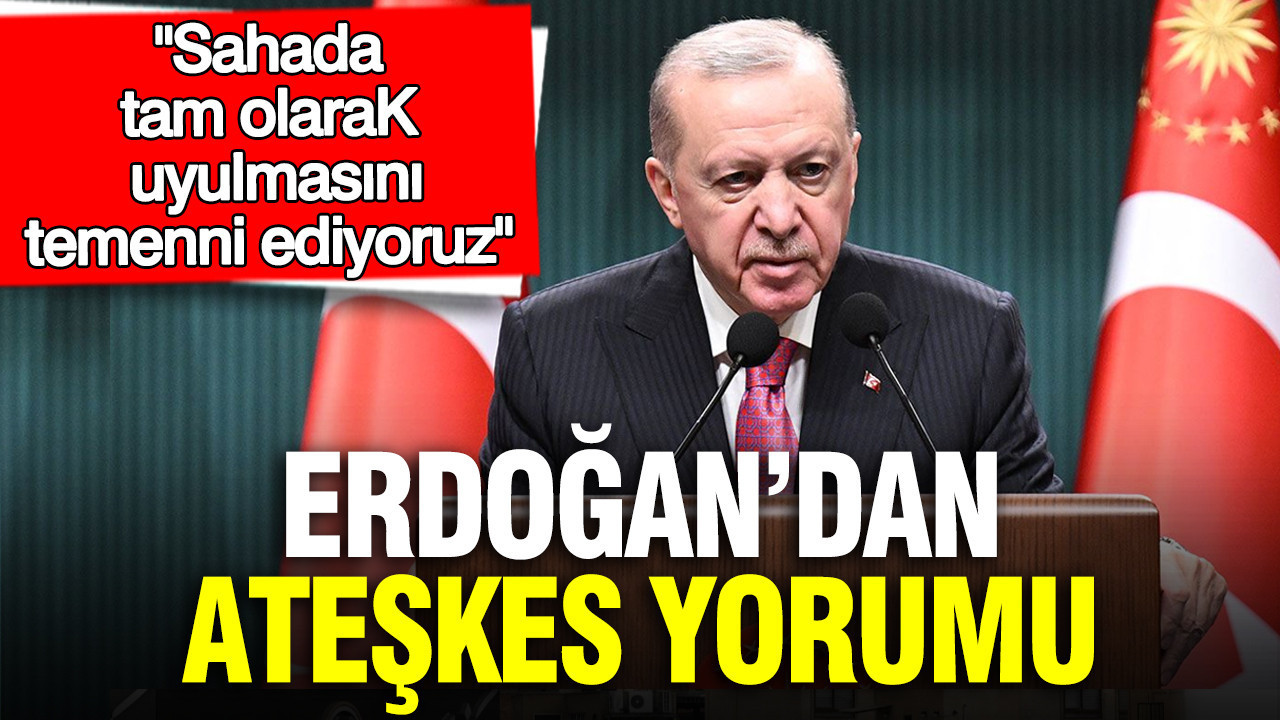 Cumhurbaşkanı Erdoğan, ateşkesle ilgili ilk yorumunu sosyal medya hesabından yaptı. Erdoğan, ateşkese katkı sunan Pakistan ve diğer ülkeleri tebrik ederek, ateşkesin sahada tam olarak uygulanmasını temenni ettiklerini söyledi.