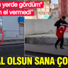 O anları gören motosikletli Ersin Çampınar'ın, gencin yanına giderek, "Helal olsun sana çocuk, tüylerim diken diken oldu. Ne yapıyorsun ağabeyim" dediği, çocuğun ise "Bayrağı yerde gördüm. Gönlüm el vermedi" yanıtını verdiği kask kamerasına yansıdı.