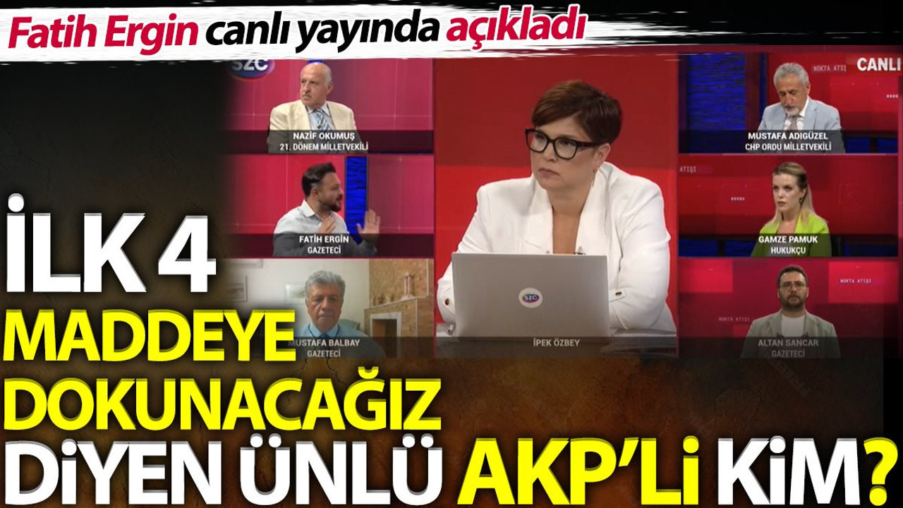 Gazeteci Fatih Ergin dün akşam katıldığı Sözcü TV canlı yayınında AKP’nin neden anayasayı değiştirmek istediğini ve kendisine verilen flaş bilgiyi açıkladı. Ergin, Erdoğan’a yakın ve Hayati Yazıcı ile aynı kanatta olan ünlü bir AKP’li ismin, aylar önce yaptığı özel bir toplantıda "İlk 4 maddeye bir şekilde dokunacağız" ifadelerini kullandığını açıkladı. Ergin dün akşamki yayının yanı sıra konu hakkında X platformunda da bir paylaşımda bulunarak: