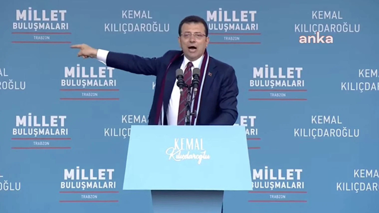 Trabzonlulara attığı uyarı mesajın okuyan İmamoğlu, "Mesajda ''Meteorolojiye göre yarın Trabzon''da kuvvetli fırtına bekleniyor'' yazıyor. Evet bugün Trabzon''da fırtına var ama 13. Cumhurbaşkanımız Sayın Kemal Kılıçdaroğlu fırtınası var!" dedi.