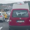 Öte yandan, devrilen hafriyat kamyonu ve oluşan trafik havadan görüntülendi.