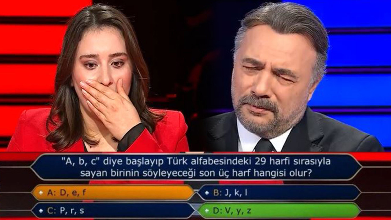 Soruda: "A, B, C diye başlayıp Türk alfabesindeki 29 harfi sırasıyla sayan birinin söyleyeceği son üç harf hangisi olur?" denildi.