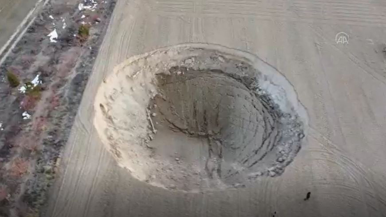 Konya''nın Karapınar ilçesinde, 37 metre çapında ve 12 metre derinliğinde obruk oluştu.