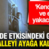 Madde etkisinde olduğu öne sürülen E.A. (25), eline aldığı kolonya şişesiyle kendisini ve evini yakacağını söyleyerek bağırmaya başladı.