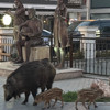 Tepe Mahallesi’nde bir yaban domuzu ve üç yavrusu, sokak ve caddelerde dolaşarak yiyecek aradı.