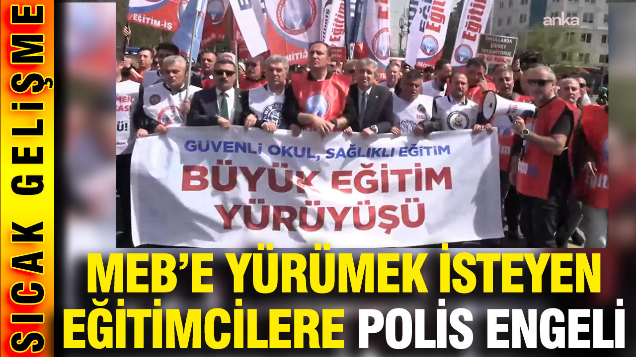 Emniyet güçleri, yürüyüş yapmak isteyen eğitimcilerin yolunu kapattı.