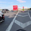 İstanbul Ataşehir TEM Otoyolu'nda seyir halindeki motosiklet sürücüsü, arkasında oturan kadının saçını çekti. Motosikletteki kadın kavga sırasında dengesini kaybetti. Darbedilen kadının motosikletten düşmekten ve kamyonun altında kalmaktan kurtulduğu anlar başka bir motosikletlinin kask kamerasına yansıdı.