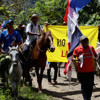 Projede ulusal ve uluslararası yasalara aykırılıklar olduğunu savunan çiftçiler; Panama bayrakları, pankartlar ve tarım ürünleriyle yürüyerek topraklarını terk etmeyeceklerini vurguladı.