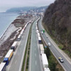 Karadeniz’e paralel uzanan sahil yolunun çift yönünde TIR parkları nedeniyle yığılmalar yaşandı. Geçen yıl yaklaşık 800 bin aracın geçtiği kapıda oluşan yoğunluk dronla görüntülendi.