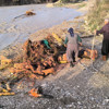 Ağaç toplayan bir vatandaş, "Kışlık odunumuzu çıkarıyoruz. Zor da olsa kışlık odunu çıkarıyoruz. Odunun tonu pahalı, 3-4 bin lira var tonu. Bu çınar ağacı, tonu 3-4 bin lira. Tehlikeli ama yakacak yok" dedi.
