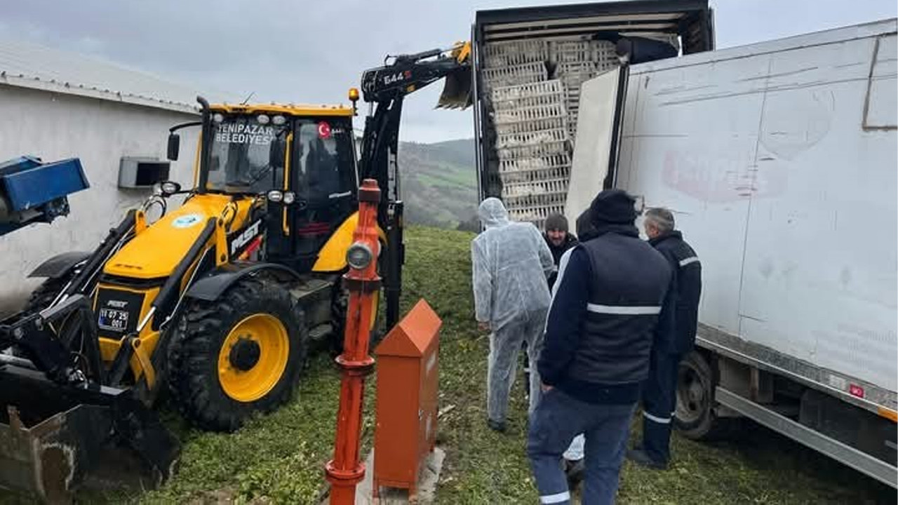 Bilecik'in Yenipazar ilçesinde tavuk çiftliğinde mahsur kalan kamyondaki tavuklar kurtarıldı.