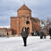 Görevlilerden kilise hakkında detaylı bilgi alan ünlü oyuncu, basın mensuplarına Akdamar Adası’na ilk kez geldiğini ve çok etkilendiğini belirtti.