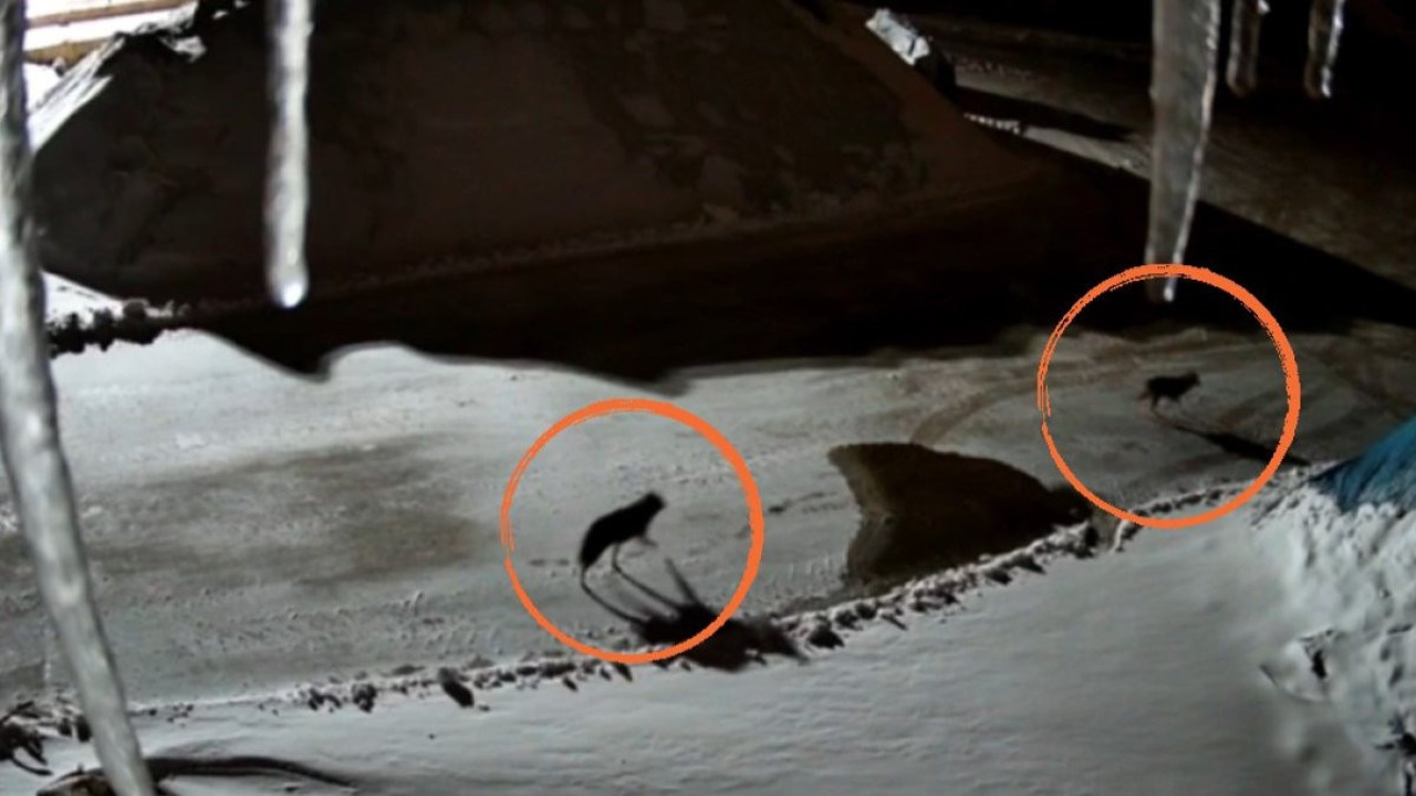 Kimsenin olmadığı sırada tesise girerek yiyecek arayan kurtlar güvenlik kamerasına yansıdı.